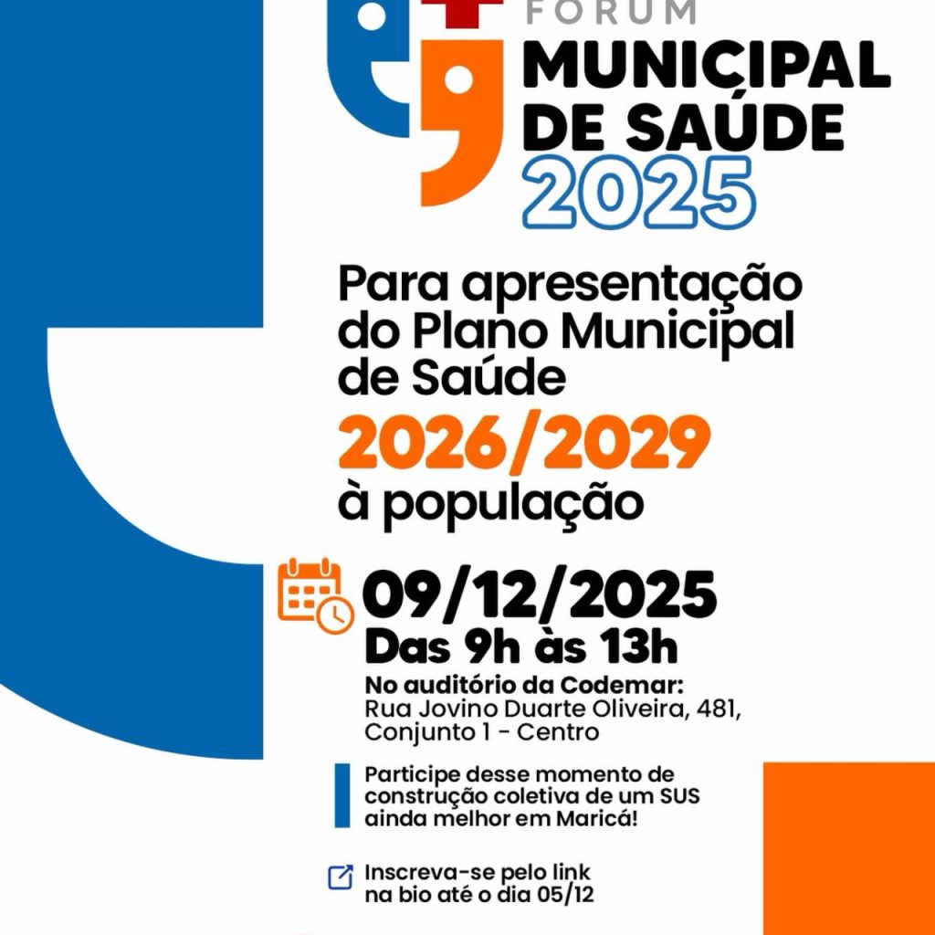 A Prefeitura de Maricá, por meio da Secretaria de Saúde, em parceria com o Conselho Municipal de Saúde, promove na próxima terça-feira (09/12), das 9h às 13h, o Fórum Municipal de Saúde 2025, que será realizado no auditório da Codemar, localizado na Rua Jovino Duarte Oliveira, 481, Conjunto 1, no Centro. Durante […]