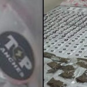 Foram apreendidas embalagens de drogas e mochilas com o nome da falsa lanchonete – Divulgação / PCPR Foram apreendidas embalagens