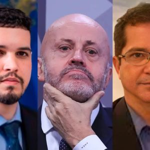 Advogado Eric Fidelis (à esquerda); André Fidelis (à direita); e Antonio Carlos Camilo Antunes, o Careca do INSS (ao centro).