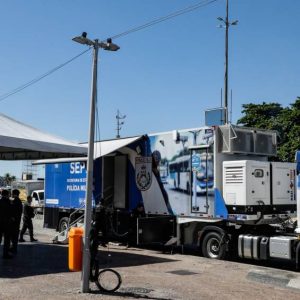 Câmeras do Centro de Comando e Controle do 19º Batalhão de Polícia Militar monitoram o entorno do palco onde vai