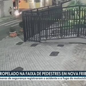 Câmeras de segurança registraram a batida e a fuga do motociclista. Idoso é atropelado por motociclista em alta velocidade em