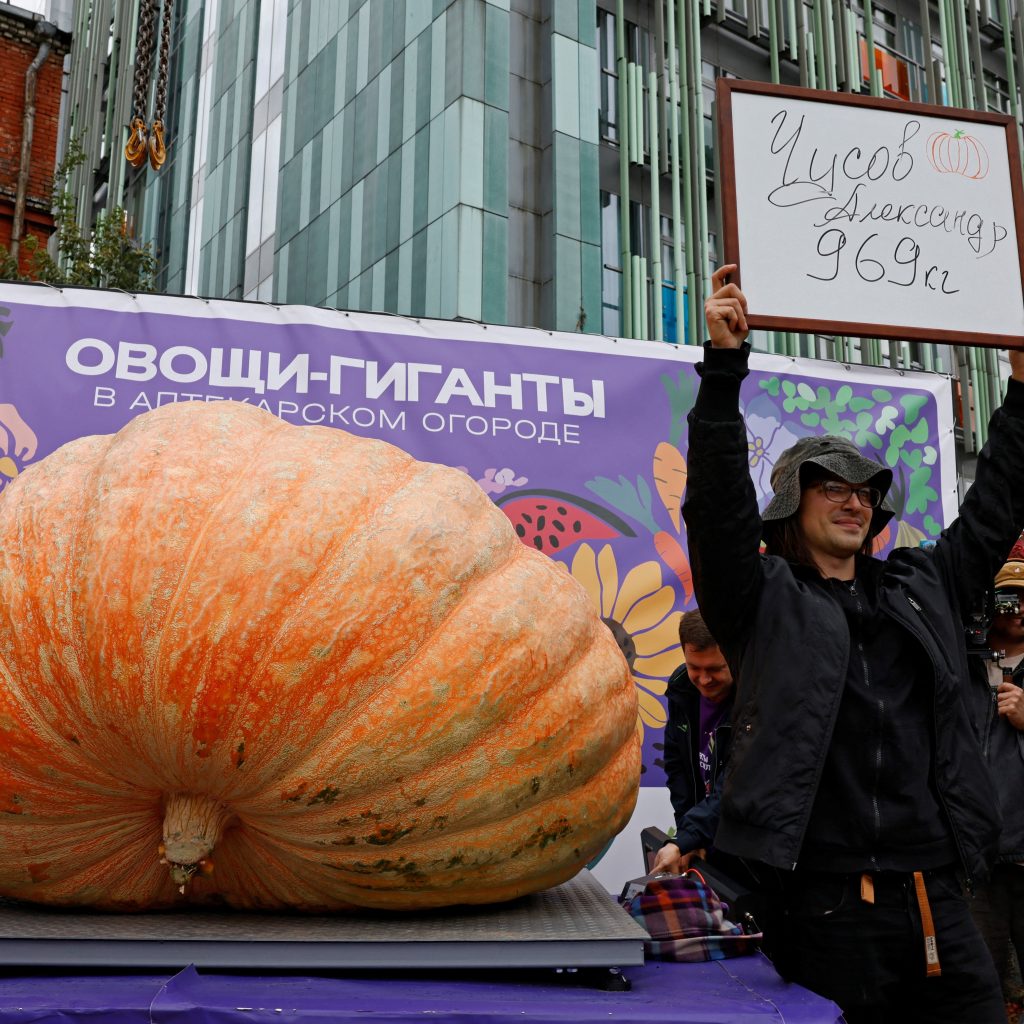 Uma abóbora gigante de 969 kg, apelidada de “Kisamor”, bateu um novo recorde nacional e se tornou a maior já cultivada na Rússia.