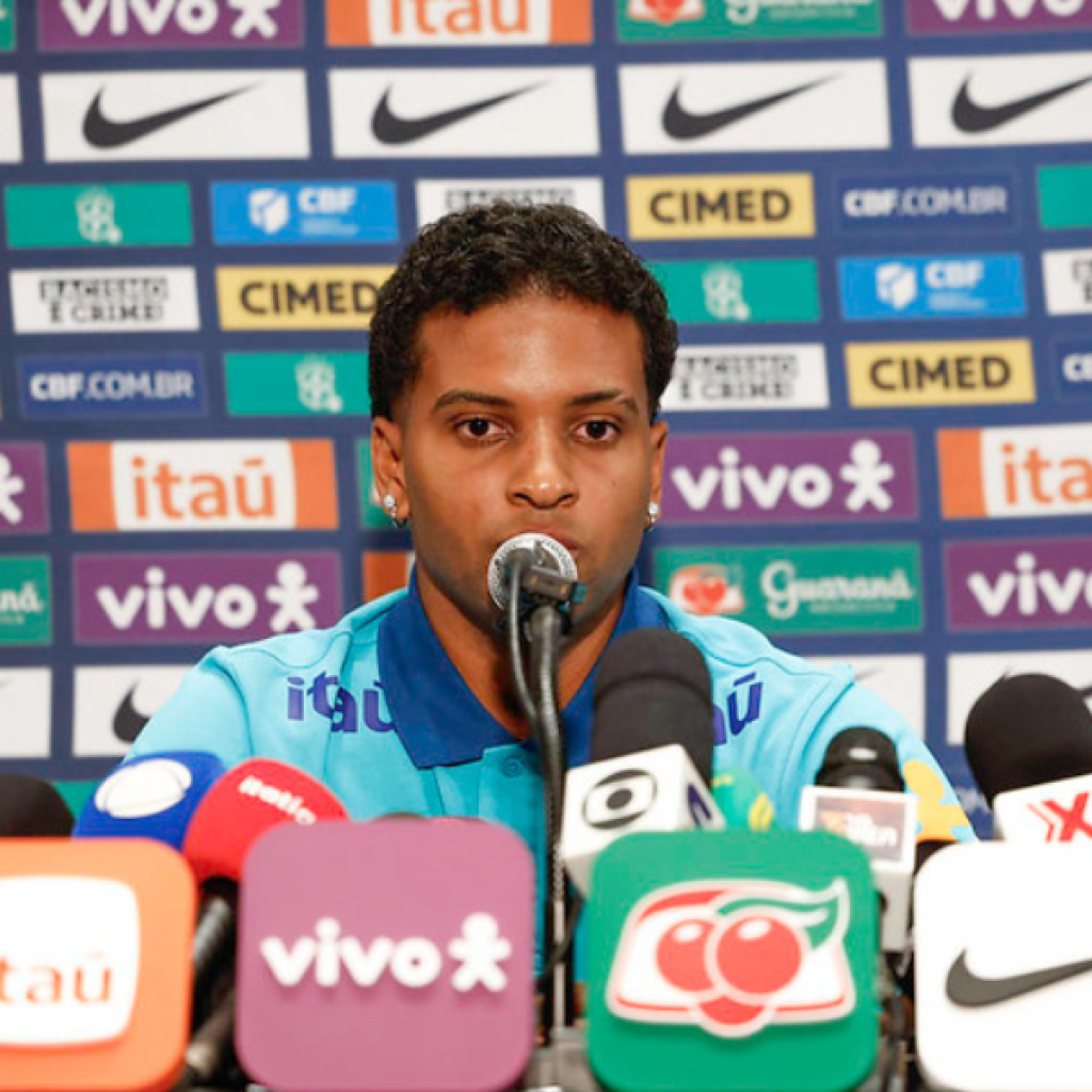 Apesar das conquistas com o italiano no Real Madrid, Rodrygo mostrou modéstia ao falar sobre a possibilidade de fazer parte do elenco brasileiro no Mundial do ano que vem nos Estados Unidos, Canadá e México. “Ninguém tem lugar garantido. Eu sei que tenho que demonstrar muito ainda”, disse. “Principalmente por confiar no meu potencial, no meu talento, acho que tudo que eu posso entregar, então, eu preciso demonstrar muito mais”.