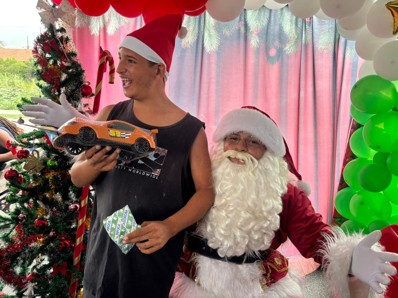 Um dos momentos de destaque do evento foi a chegada do Papai Noel, símbolo natalino que encantou as crianças e seus familiares, com sorrisos, abraços e muitos pedidos repletos de esperança. Em clima de celebração, os pequenos também participaram da distribuição de presentes e de sorteios, tornando a manhã ainda mais marcante.