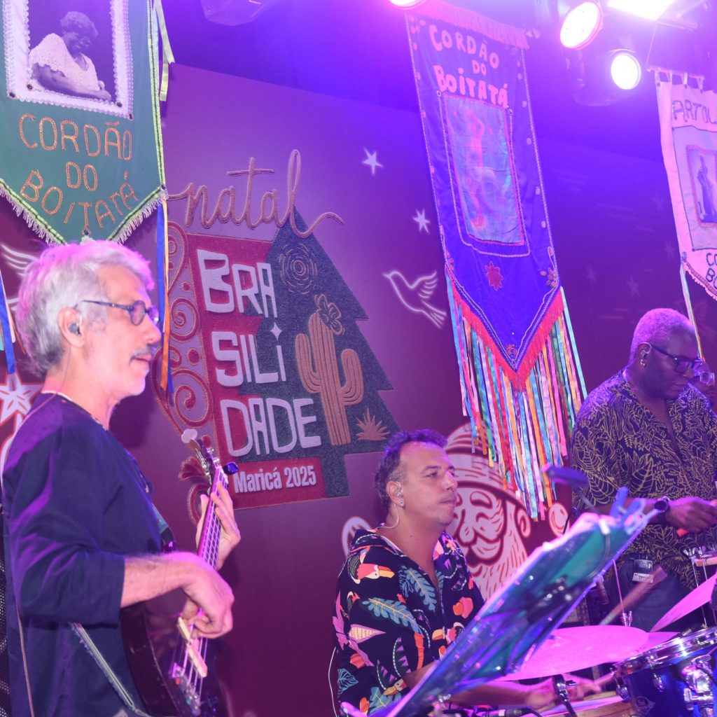 A Prefeitura de Maricá, por meio da Companhia Maricá, Arte, Roteiros e Experiências (MARÉ), encerrou, na noite deste domingo (04/01), a programação musical do Natal Brasilidade 2025. A despedida ficou por conta do grupo Cordão do Boitatá, um dos principais coletivos do carnaval de rua do Rio de Janeiro.