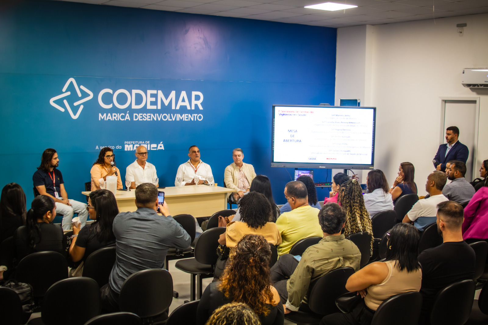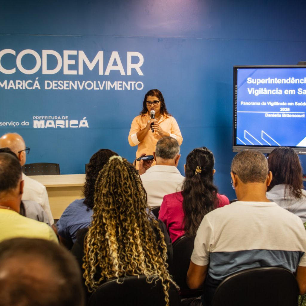 A Prefeitura de Maricá, por meio da Secretaria de Saúde, realizou o 1º Seminário de Gestão da Vigilância em Saúde do município no auditório da Companhia de Desenvolvimento de Maricá (Codemar), no Centro. O encontro, que ocorreu na quinta-feira (18/12), contou com a presença de gestores, técnicos e profissionais da rede municipal para debater estratégias, apresentar experiências exitosas e fortalecer a atuação integrada da Vigilância em Saúde na cidade.