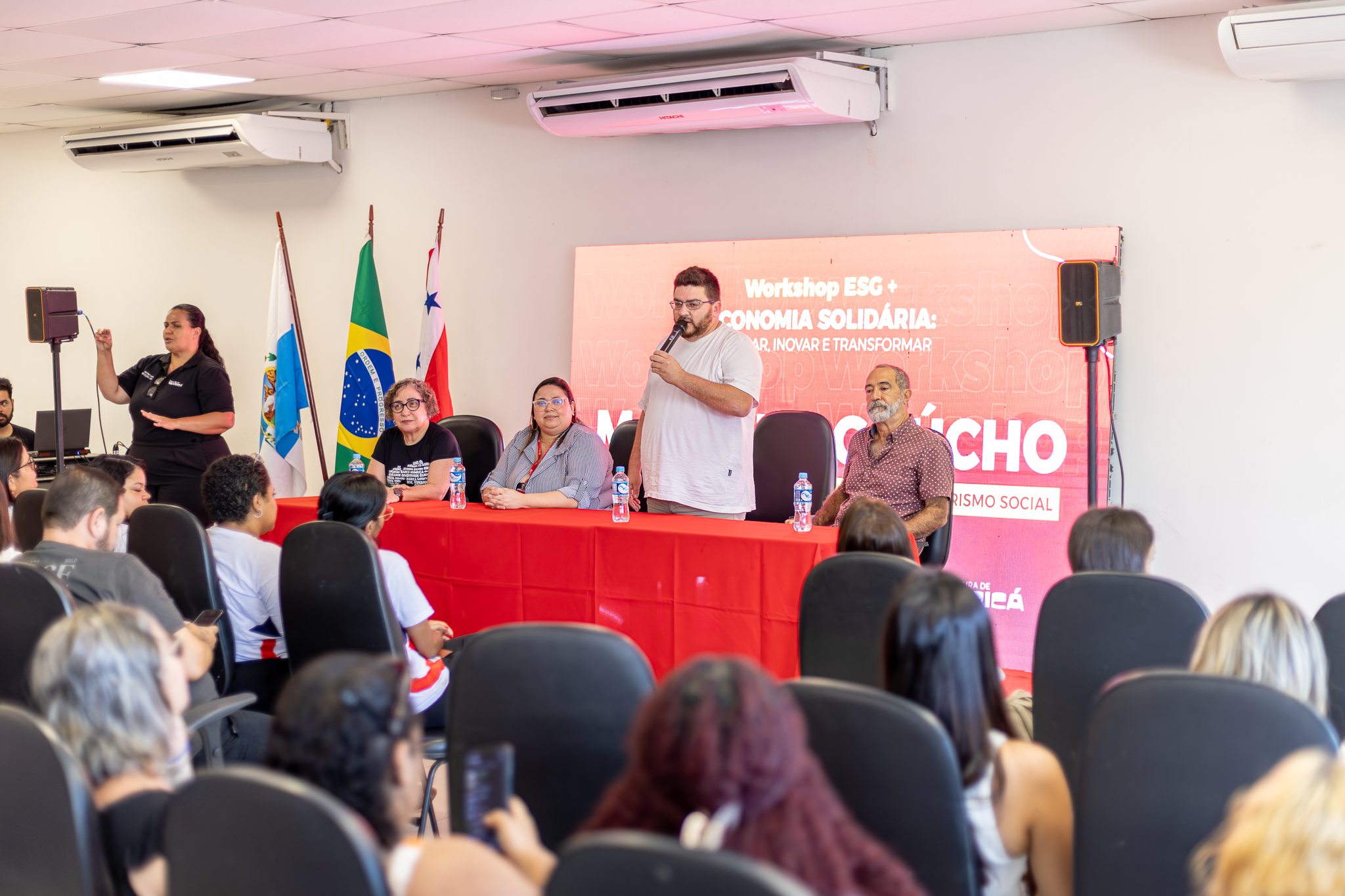 Com foco na troca de experiências, práticas sustentáveis e fortalecimento das iniciativas locais, o workshop promoveu reflexões sobre as práticas de ESG (Ambiental, Social e Governança) aplicadas à economia solidária e às políticas públicas municipais, incentivando a preservação ambiental, responsabilidade social e transparência.