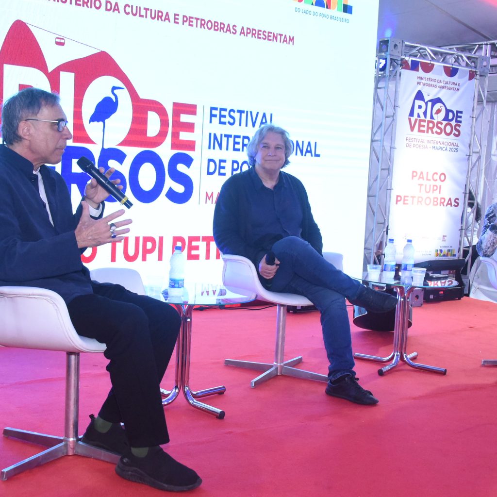 O Rio de Versos está em sua 30ª edição e, pela primeira vez, acontece fora da capital fluminense. Na mesa mais aguardada do dia, Arnaldo Antunes e Jorge Israel – que também fez o show da noite – falaram sobre poesia e música, seus encontros e desencontros.