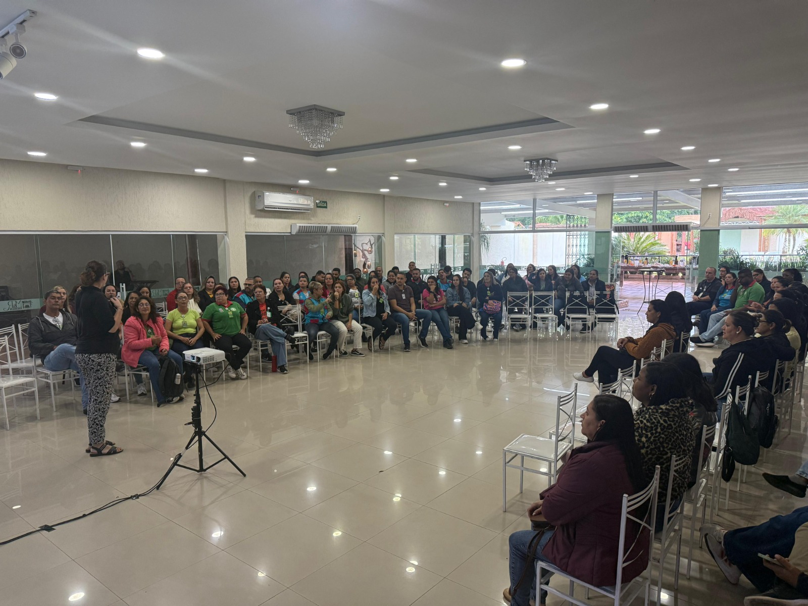 A Prefeitura de Maricá, por meio da Secretaria de Saúde, promoveu na segunda-feira (07/07) uma capacitação direcionada ao acolhimento das pessoas surdas nas Unidades de Saúde da Família (USF), buscando otimizar o atendimento a esse público nos serviços de Atenção Primária. A formação, que ocorreu no Condado, contou com a participação de aproximadamente 140 agentes comunitários de saúde que atuam no município, em dois turnos, onde foram compartilhadas orientações essenciais sobre o tema entre os presentes.