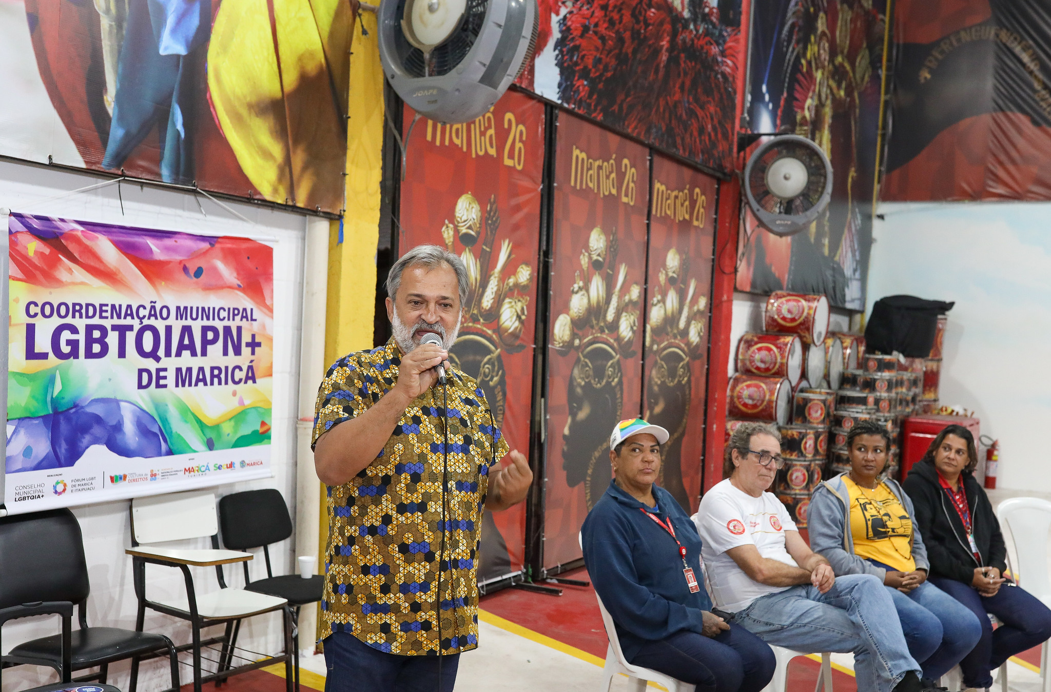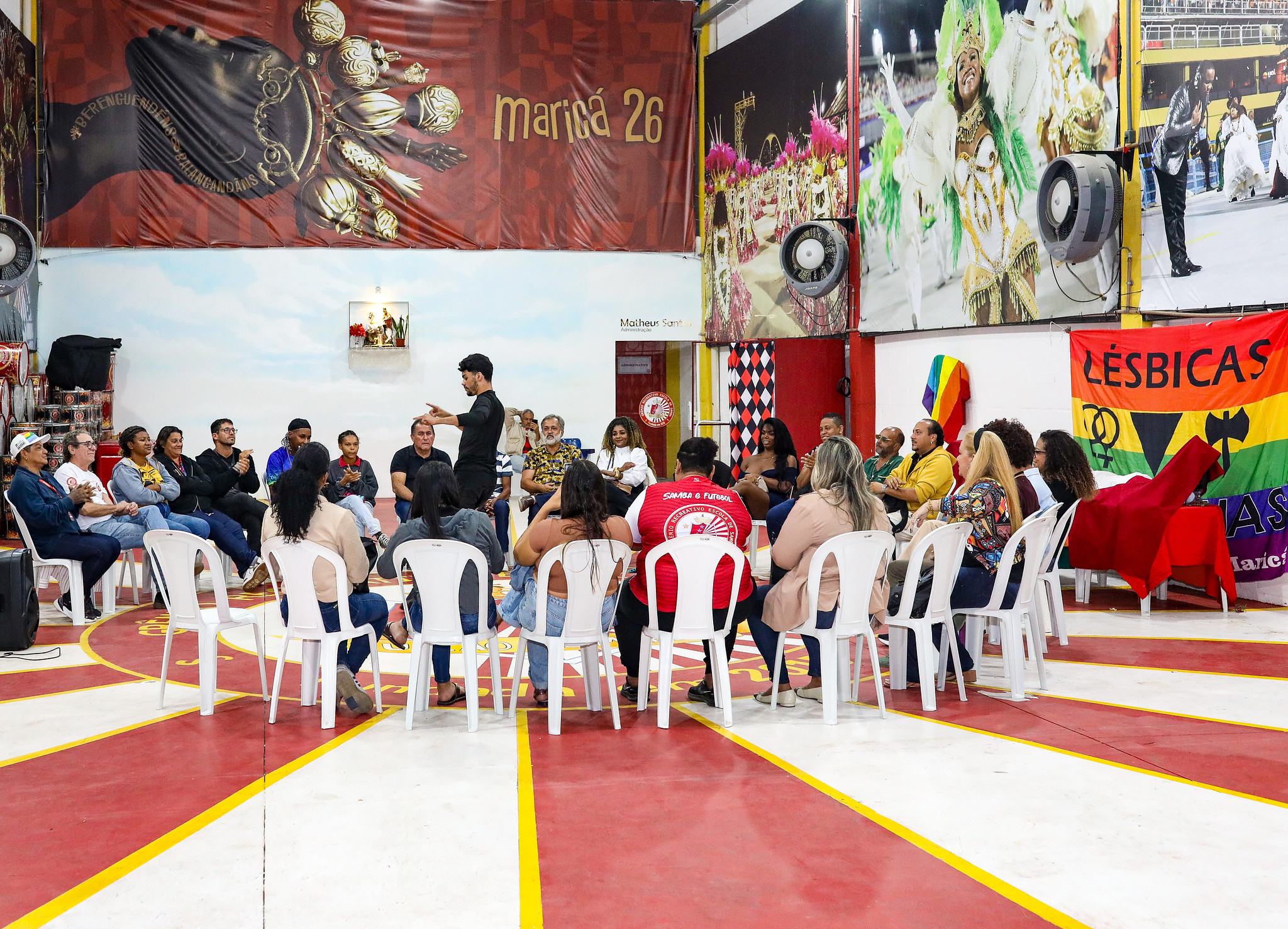 A Prefeitura de Maricá, por meio das Secretarias de Direitos Humanos e Assistência Social e Cidadania, promoveu, nesta quinta-feira (26/06), uma roda de conversa com o tema “Orgulho e Tamborim – Vozes LGBT no Samba” na quadra da Escola de Samba União de Maricá. O evento teve como foco as vivências da comunidade LGBTQIAPN+ no samba e no carnaval, trazendo questões de representatividade, desafios enfrentados por artistas da comunidade e a importância da inclusão nesse espaço artístico.