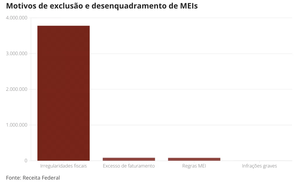 A resposta veio no pente-fino. Só em 2025, a Receita retirou 3,9 milhões de MEIs do SIMEI, sistema de tributação da categoria. A maior parte era de CNPJs inativos ou abandonados, mas o excesso de faturamento continuou entre os principais motivos de desenquadramento.