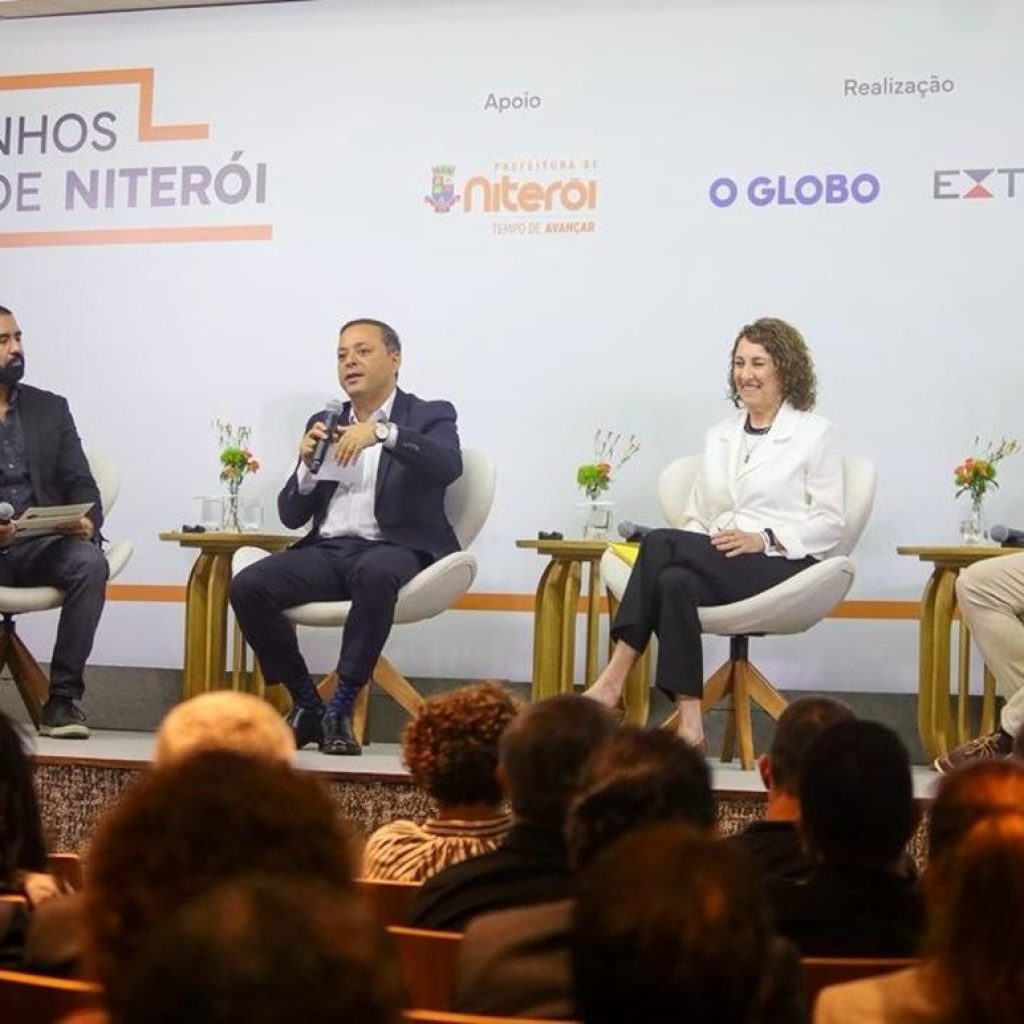Inovação e economia criativa – O encontro “Caminhos de Niterói – Reviver Centro” teve também a mesa “Economia do futuro: inovação e novos polos de desenvolvimento”. Participaram a secretária municipal de Habitação e Regularização Fundiária, Marcele Sardinha; o reitor da Universidade Federal Fluminense (UFF), Antônio Claudio da Nóbrega; e a gerente de Ambientes de Inovação da Federação das Indústrias do Estado do Rio de Janeiro (Firjan), Julia Zardo.