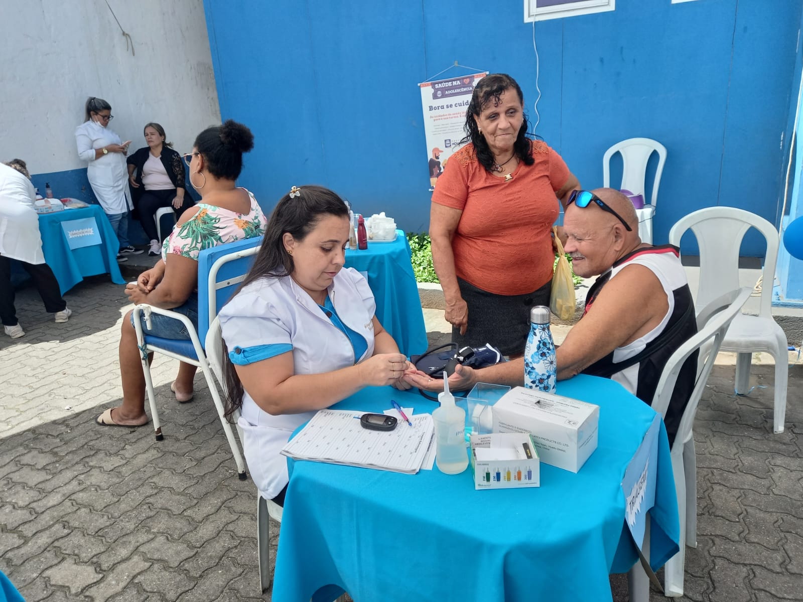 Quem esteve na unidade de saúde pôde sair com encaminhamentos para pedidos de exames de sangue e próstata, aferiu a pressão, fez teste glicêmico (para medir a quantidade de açúcar no sangue e diagnosticar e monitorar condições como diabetes e pré-diabetes), entre outros serviços.