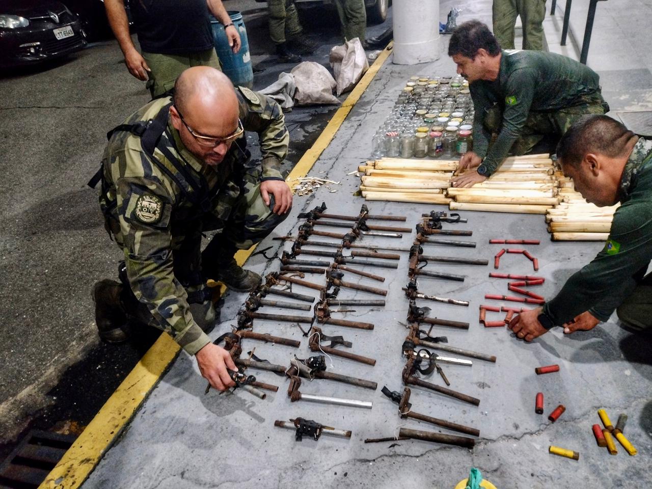Com o suspeito, foram apreendidas 72 unidades de palmito juçara (Euterpe edulis), espécie nativa da Mata Atlântica ameaçada de extinção, cuja retirada é proibida por lei. Também foram localizados 41 trabucos, além de munições e pólvora, materiais associados à prática de caça ilegal na região.