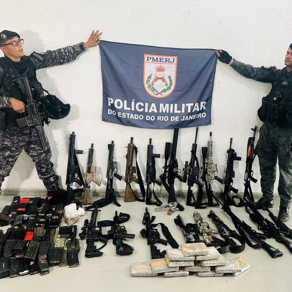 Na casa, um homem foi encontrado morto e 25 suspeitos foram detidos, dois deles adolescentes. Mais da metade não era do Rio: 11 eram naturais da Bahia, quatro do Pará, um do Maranhão e um de Pernambuco. A busca no imóvel resultou na apreensão de um revólver e 19 fuzis — entre eles, o armamento desviado da PM, produzido pela Indústria de Material Bélico do Brasil (Imbel), estatal vinculada ao Exército, em Itajubá. A arma traz gravada numa parte em metal a inscrição “Estados Unidos do Brasil – 15 de Novembro de 1889”, o que indica tratar-se de um “patrimônio das forças de segurança pública”, segundo escreveu no laudo o perito responsável por analisar o fuzil.