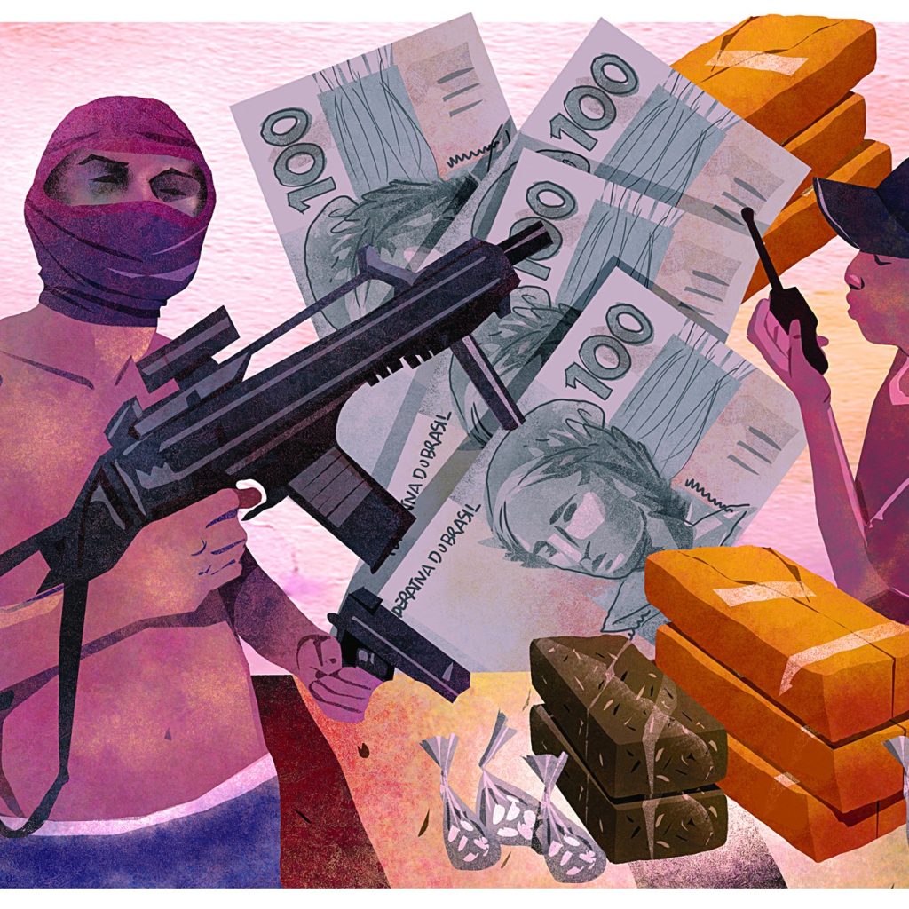 Existem também funções auxiliares, como a do “formiguinha”, que transporta pequenas quantidades de droga com rapidez para lugares; o “fiel”, encarregado de circular pelas ruas durante a madrugada para observar o território e identificar movimentações consideradas estranhas; e o “sabadão” ou “malandrex”, a depender da comunidade — que são jovens recrutados apenas aos fins de semana ou em períodos de grandes eventos.
