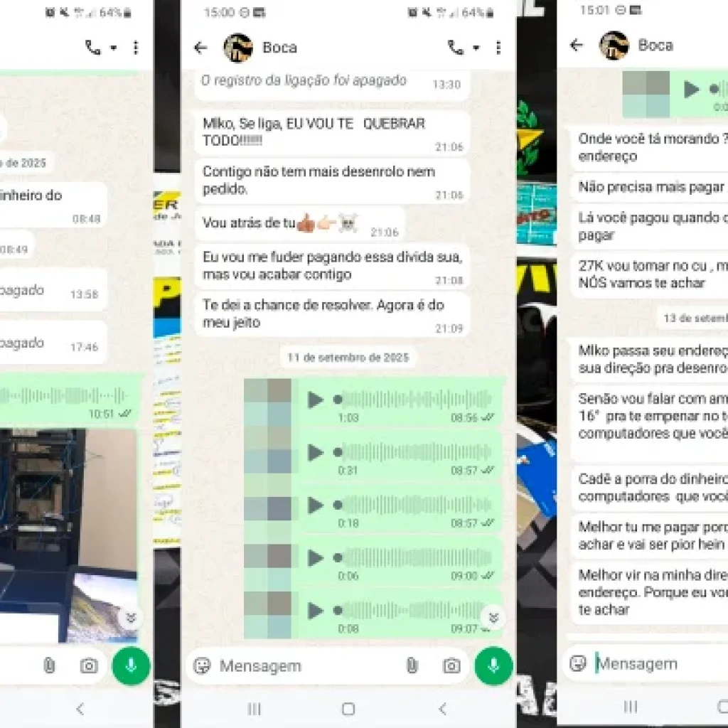 Os pagamentos eram exigidos em dinheiro vivo ou por meio de máquinas de cartão que o próprio agiota fornecia. Em mensagens enviadas às vítimas, “Boca” fazia ameaças diretas de morte caso os valores não fossem pagos imediatamente.