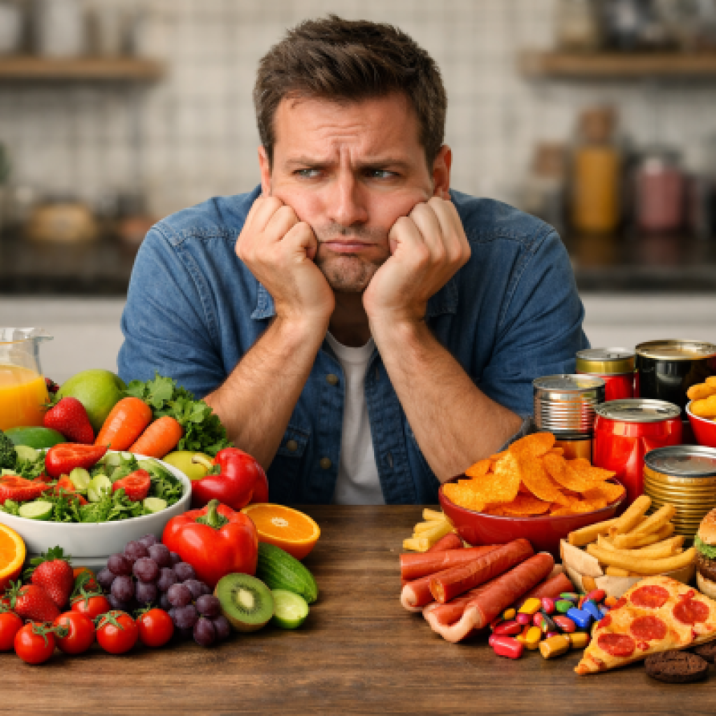 Todo mundo sabe que comer é uma das coisas mais prazerosas que existe. O problema é que, atualmente, escolher o que comer virou quase um teste de sobrevivência. De um lado, os alimentos naturais: lindos, frescos, cheios de vida, quase posando para fotos no Instagram. Do outro, os ultraprocessados: coisas que tem cor de comida, textura de comida, cheiro de comida, mas têm a mesma naturalidade de um boneco de cera. Entre os dois, estão os alimentos processados, tentando fazer o papel de diplomatas nessa guerra gastronômica — tipo aquele amigo que tenta agradar os dois lados para evitar uma briga no bar.