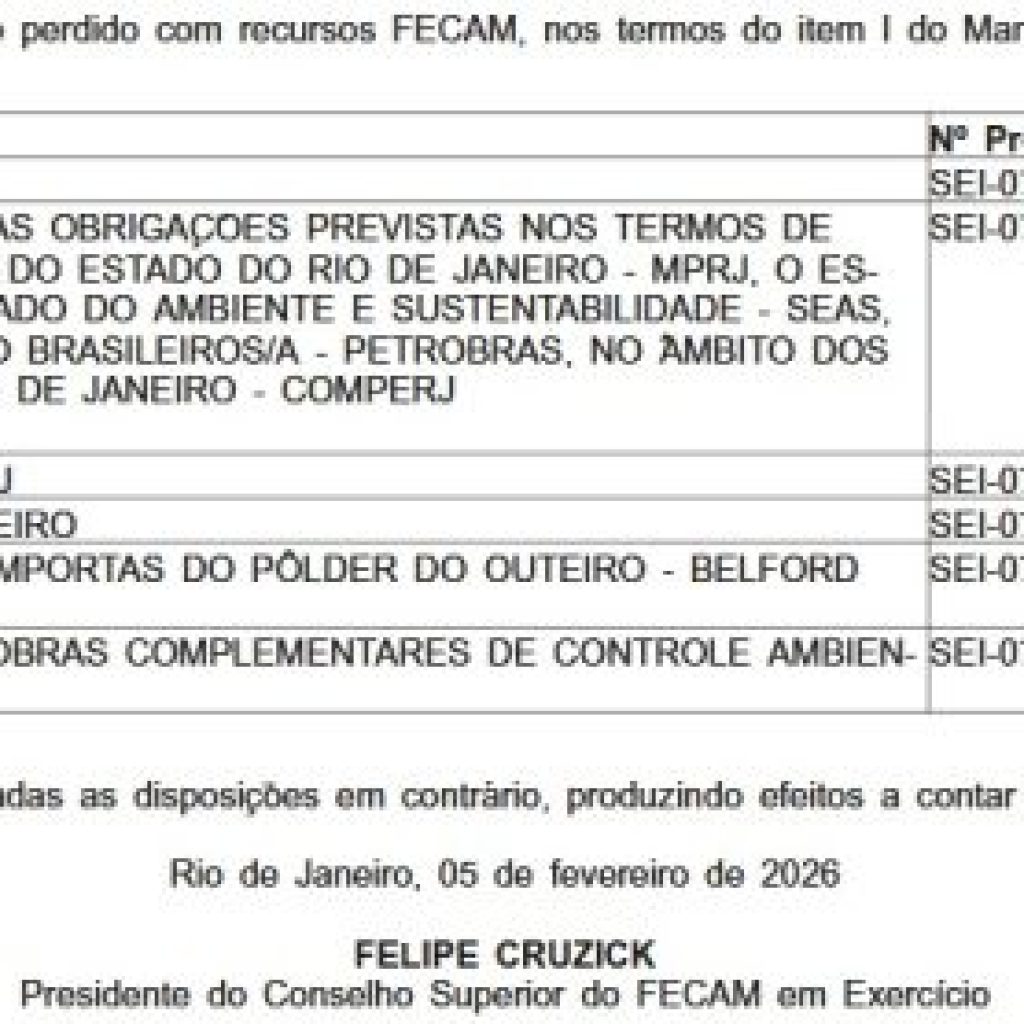 Uma das pastas que mais movimenta recursos no Estado do Rio, a Secretaria do Ambiente aprovou o uso de R$ 182 milhões do Fundo Estadual de Conservação Ambiental e Desenvolvimento Urbano (Fecam) para investir em um pacote de projetos ambientais em 2026.