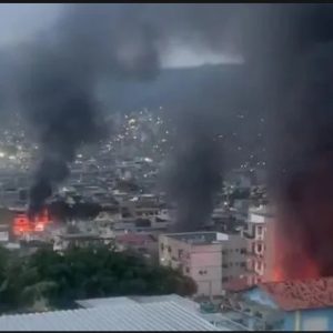 Criminosos reagiram com barricadas em chamas e, em um novo nível de violência, lançaram bombas com drones contra os agentes da Coordenadoria de Recursos Especiais (Core). Um policial do Bope foi ferido de raspão e três civis foram baleados por balas perdidas.