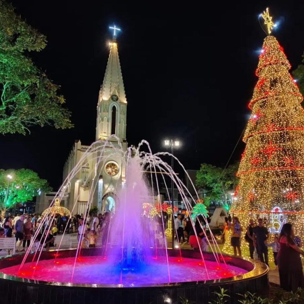 O coração da festa pulsa na Vila do Papai Noel, montada no pátio da Prefeitura. Filas se formam diariamente para visitar a Casa do Bom Velhinho e embarcar no tradicional trenzinho, enquanto shows, teatro infantil e comidas típicas aquecem o espírito natalino.