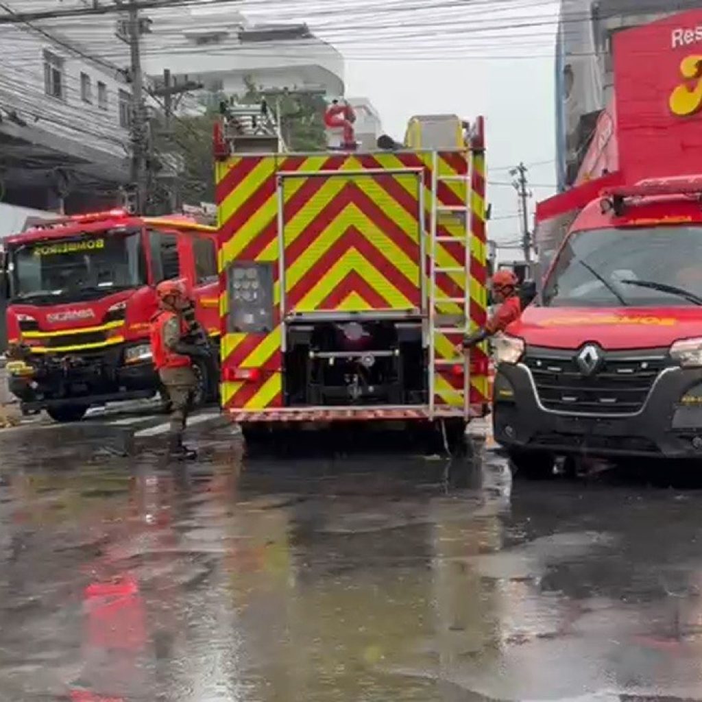 O Bombeiros chegaram ao local do resgate no meio a inundação por conta da forte chuva da manhã desta sexta-feira (27), que também afetou diversos pontos do município.