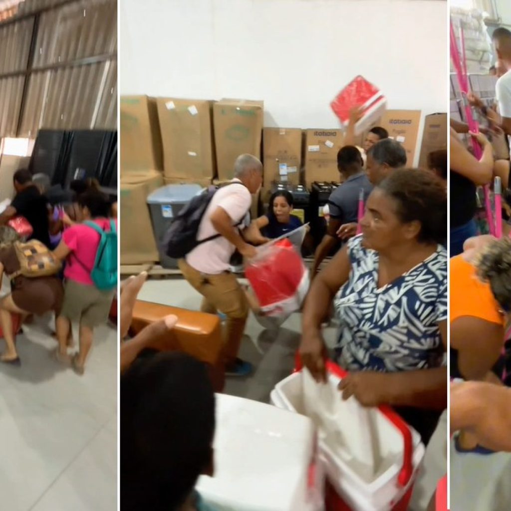 Um vídeo mostra uma confusão generalizada entre clientes de uma loja de atacado em Cabo Frio, na Região dos Lagos do Rio, para tentar comprar coolers e vassouras, que estavam entre os itens promocionais do estabelecimento recém-inaugurado.