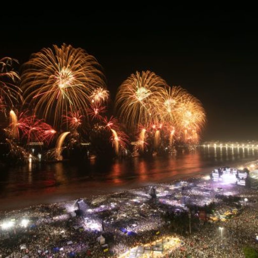 Antes dos fogos, a festa começou com shows. Por volta das 20h, Gilberto Gil e Ney Matogrosso subiram ao palco principal na altura do Copacabana Palace. Gil foi a atração principal e fez homenagens à filha, Preta Gil, falecida em julho, além de um aceno ao compositor Chico Buarque. Alcione e Belo também cantaram juntos antes da virada. após o show pirotécnico, o palco recebeu João Gomes, Iza, Alok e a bateria da escola de samba Beija-Flor.