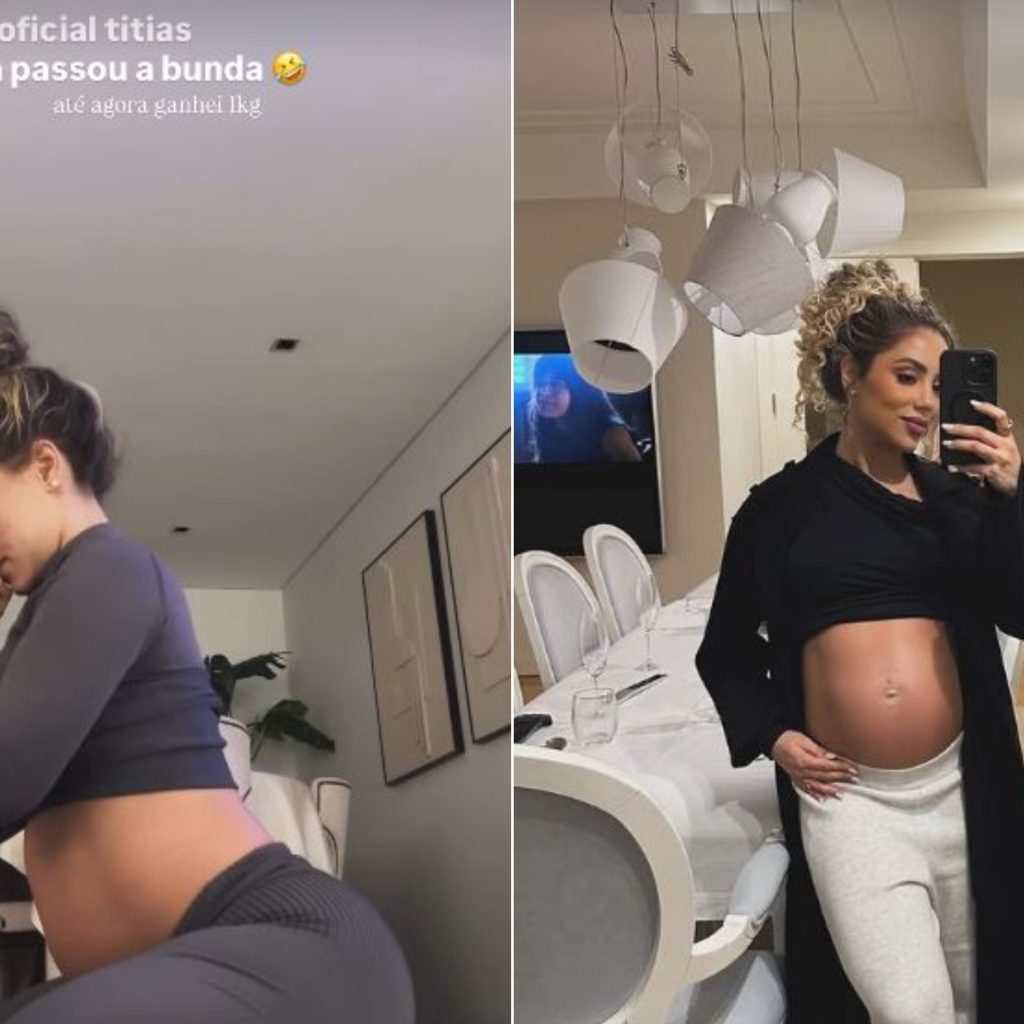 “É oficial, titias: a barriga passou a bunda (risos). Até agora ganhei 1 kg. Praticamente entrando no sétimo mês e esse neném já tá todo amostradinho”, escreveu ela, que logo depois também publicou uma foto exibindo a barriga em frente ao espelho.