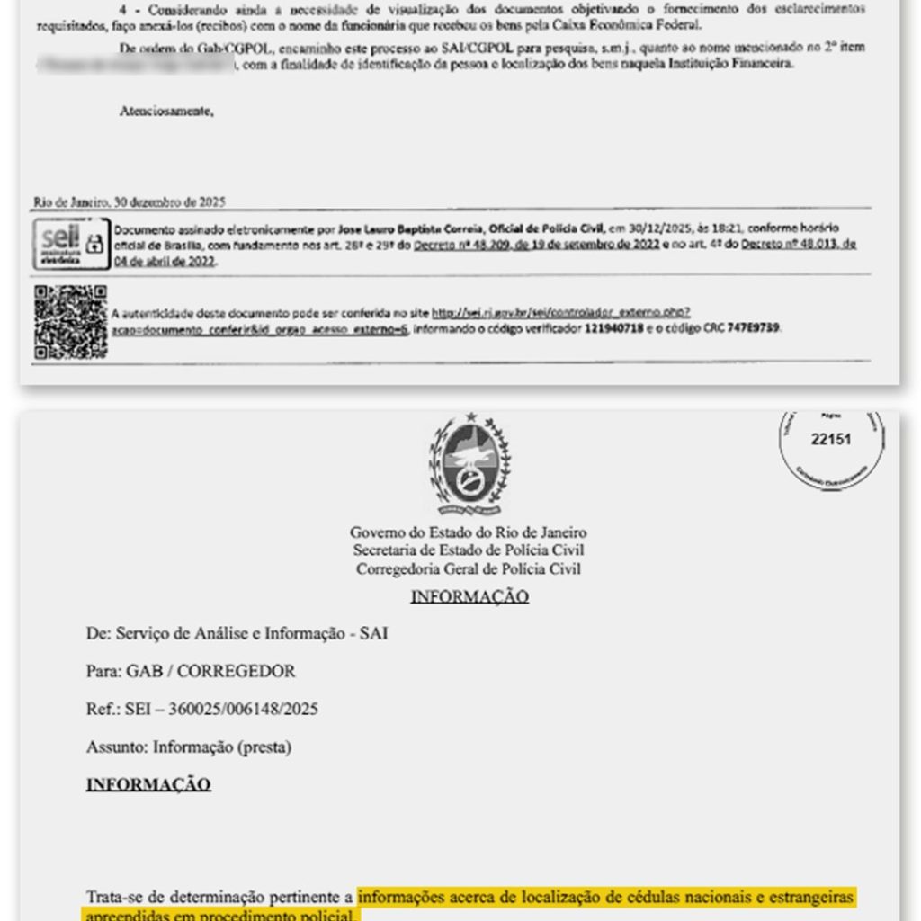 No início deste ano, a corregedoria voltou a informar à Justiça sobre a “localização de cédulas nacionais e estrangeiras apreendidas” no procedimento. No documento, sem apresentar explicações detalhadas, a Polícia Civil relatou que realizou uma “consulta em fontes abertas” e mencionou uma funcionária do Banco do Brasil, indicando seu nome e endereço. Guedes entendeu que caberia a ele procurá-la.