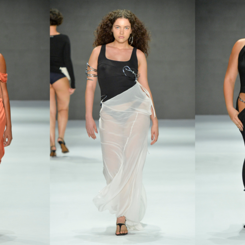 Suas cordas não apertam, sustentam. Os metais não violentam, envolvem. Os recortes não escondem, acompanham o olhar. Em “Sunburn”, os recortes deixaram mais pele à mostra, não como provocação, mas como gesto de quem entende que no Rio o corpo é o primeiro lugar onde a cidade se manifesta. A mulher que venceu o LVMH Prize e fez o primeiro desfile 100% plus size da história da temporada italiana em 2022 só precisou pisar no Pier Mauá para lembrar que o corpo brasileiro nunca precisou de molde importado.