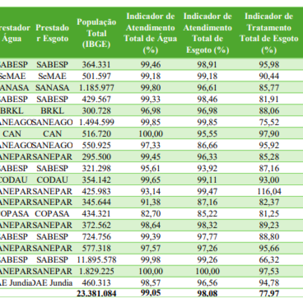 O levantamento é do Instituto Trata Brasil (ITB), com apoio da GO Associados.