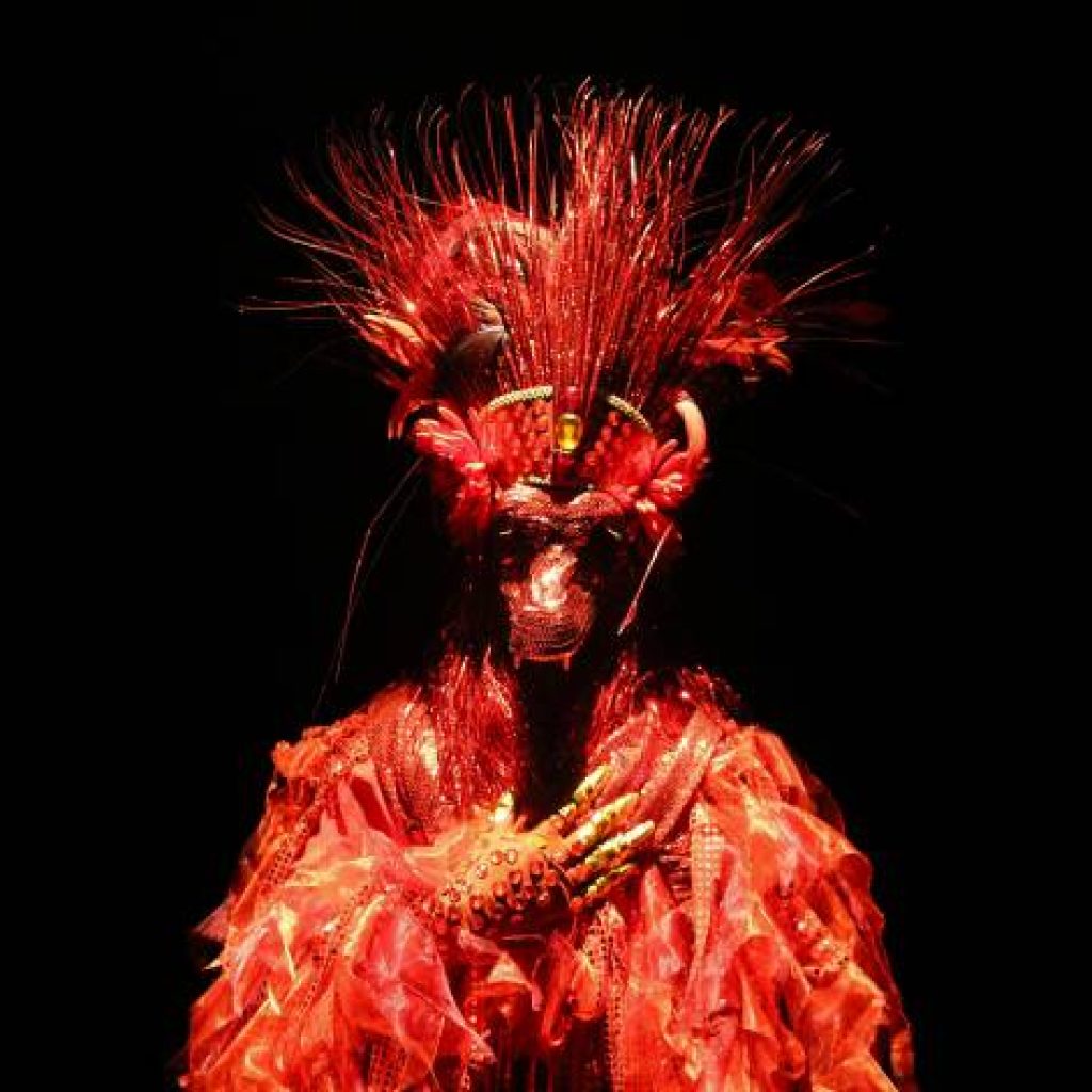Quando deixa de ser olhado como traje e passa a ser como um “parangolé”: quando é vestido, ele dança. É uma obra de arte vestível que se torna pele, habitat, visagem. Na cultura indígena, quando você se transmuta em um ancestral ao vestir a máscara, você o invoca. No caso, invoco minha avó pernambucana, minha bisavó e essa linhagem de mulheres da minha família para falar com a Julieta. A partir daí, o figurino torna-se portal, um “entremundos”, um ser mitológico que transita entre tempos em uma voz intergeracional.